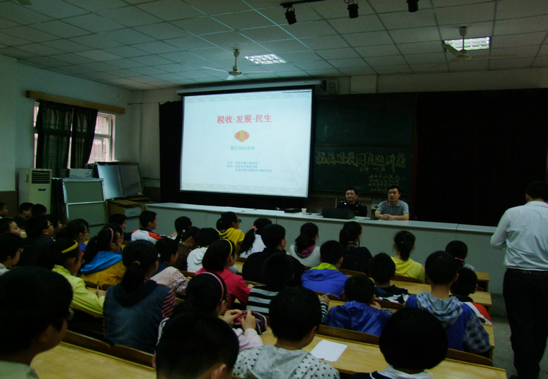 為了豐富團隊活動課的內容,為了拓展學生知識體系,為了迎接第22個全國稅收宣傳月,作為安徽省地方稅收教育基地的安慶市外國語學校, 2013年4月18日下午團隊活動課,安外(西區(qū))在校報告廳聯(lián)合市地稅局開展了“稅法進校園” 活動。本次活動,由市地稅局法規(guī)科葉強同志就“稅收•發(fā)展•民生”對初一年級學生進行講座。葉老師用平實而又不乏活潑的語言,在短短的45分鐘里,讓同學們了解了中國稅收的歷史、稅收的用途、稅收的種類及中外稅收趣聞,同學們收獲頗豐。