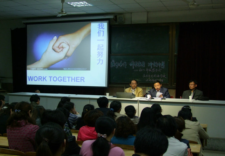 為進(jìn)一步加強學(xué)校與家長的溝通,增進(jìn)家長對后階段畢業(yè)班教育教學(xué)工作的了解和認(rèn)識,2013年4月25日晚上7點,安慶市外國語學(xué)校(西區(qū))組織召開了初三年級家長會。本次家長會的主題是“密切合作,科學(xué)指導(dǎo),沖刺中考”。會議由初三年級長施慶峰老師主持,常務(wù)副校長張燕斌、教學(xué)部主任凌謙參加了本次會議。