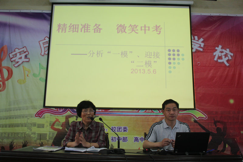 5月6日下午,初三全體師生在報(bào)告廳舉行一模分析會、二模動員會。