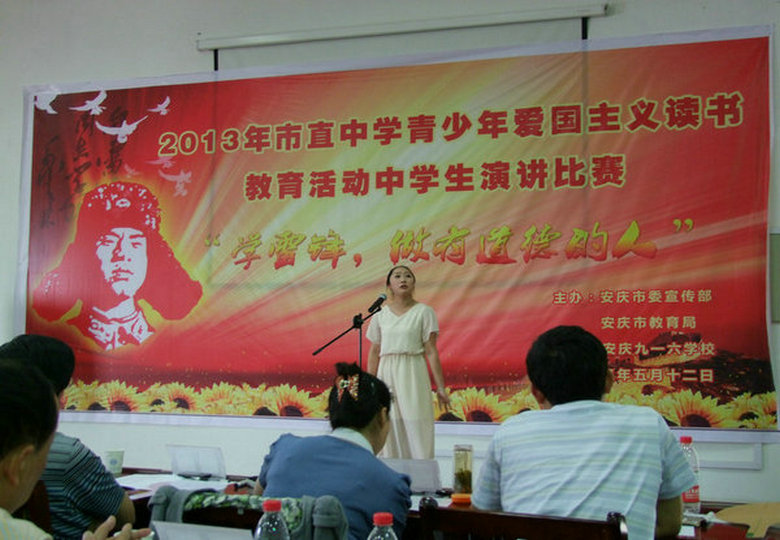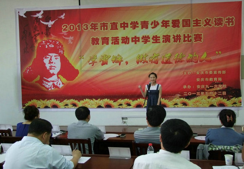 為了加強(qiáng)在廣大青少年中進(jìn)行愛國主義教育,唱響時(shí)代主旋律,豐富校園文化,進(jìn)一步提高學(xué)生的綜合素質(zhì),2013年5月12日上午,安慶市外國語學(xué)校組隊(duì)參加了“學(xué)雷鋒,做有道德的人” 市直青少年愛國主義讀書教育演講比賽。經(jīng)過層層角逐、評委現(xiàn)場打分,安外(西區(qū))初一(7)班劉琦同學(xué)、安外(東區(qū))高二(10)班馬亞楠同學(xué)從39名參賽選手中脫穎而出,榮獲二等獎;另:東區(qū)高二(2)班邢楊同學(xué)榮獲三等獎。在比賽的過程中,我校選手毫不緊張,語言清晰、表情豐富,很好地展現(xiàn)了安外學(xué)生的風(fēng)采!
