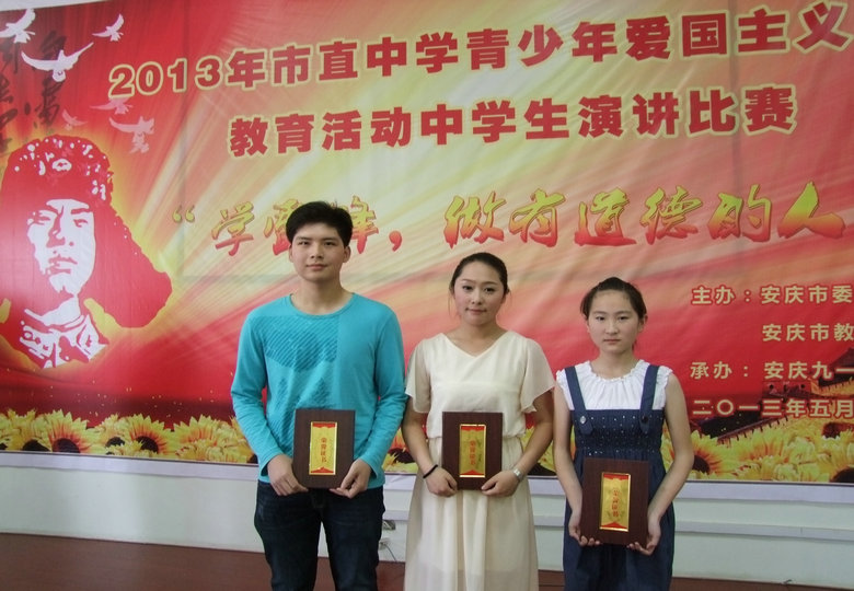 為了加強(qiáng)在廣大青少年中進(jìn)行愛國主義教育,唱響時代主旋律,豐富校園文化,進(jìn)一步提高學(xué)生的綜合素質(zhì),2013年5月12日上午,安慶市外國語學(xué)校組隊參加了“學(xué)雷鋒,做有道德的人” 市直青少年愛國主義讀書教育演講比賽。經(jīng)過層層角逐、評委現(xiàn)場打分,安外(西區(qū))初一(7)班劉琦同學(xué)、安外(東區(qū))高二(10)班馬亞楠同學(xué)從39名參賽選手中脫穎而出,榮獲二等獎;另:東區(qū)高二(2)班邢楊同學(xué)榮獲三等獎。在比賽的過程中,我校選手毫不緊張,語言清晰、表情豐富,很好地展現(xiàn)了安外學(xué)生的風(fēng)采!