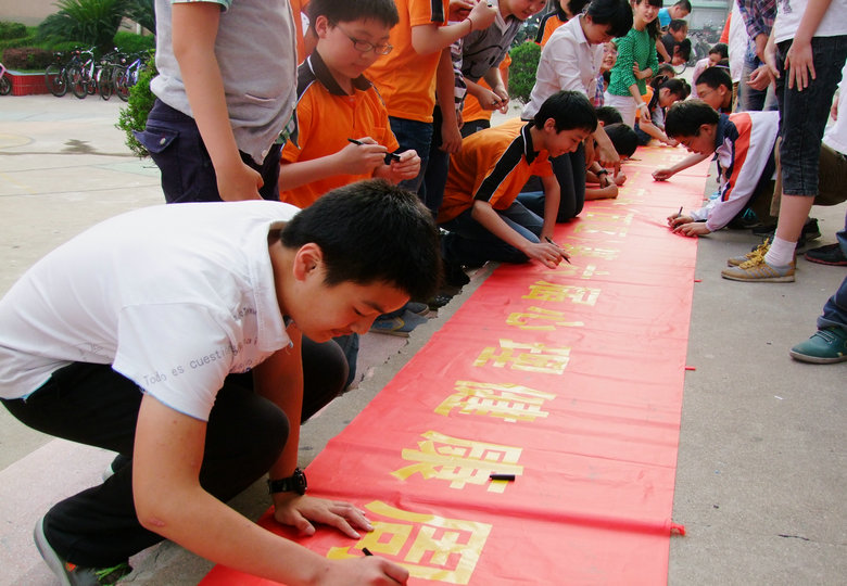 周一下午第四節(jié)課外活動課,在陽光俱樂部成員的組織下,我校西區(qū)的同學(xué)在教學(xué)樓前舉辦了大型簽名活動。本次心理健康周簽名活動以“與心靈相約,與快樂同行”為主題,從活動的開始,同學(xué)們的簽名熱情就非常高漲。本次簽名活動不僅增強了學(xué)生的心理健康意識,同時也展現(xiàn)了當(dāng)代中學(xué)生樂觀向上的良好心態(tài)。