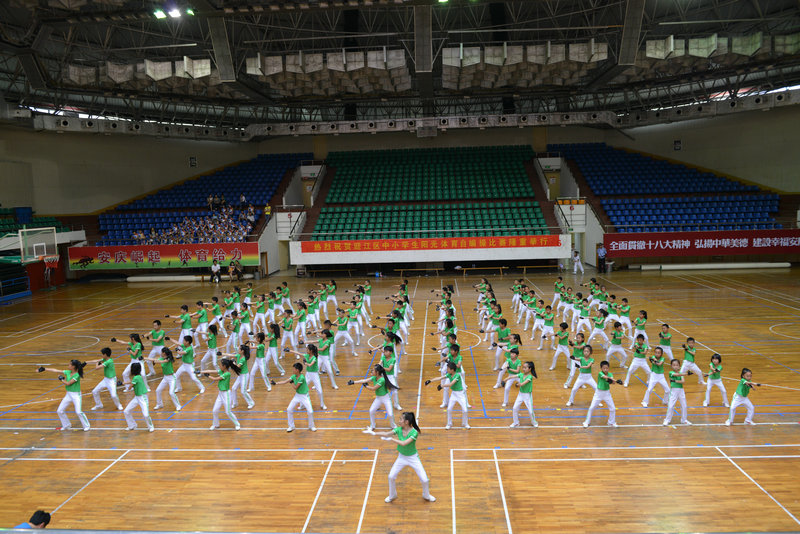 6月8日,外國(guó)語(yǔ)小學(xué)部101名學(xué)生身著整齊服裝,精神抖擻地來(lái)到了市體育館。此次迎江區(qū)中小學(xué)生校園“陽(yáng)光體育”自編操比賽將在這里拉開帷幕,來(lái)自全區(qū)的17支代表隊(duì)參與了角逐。