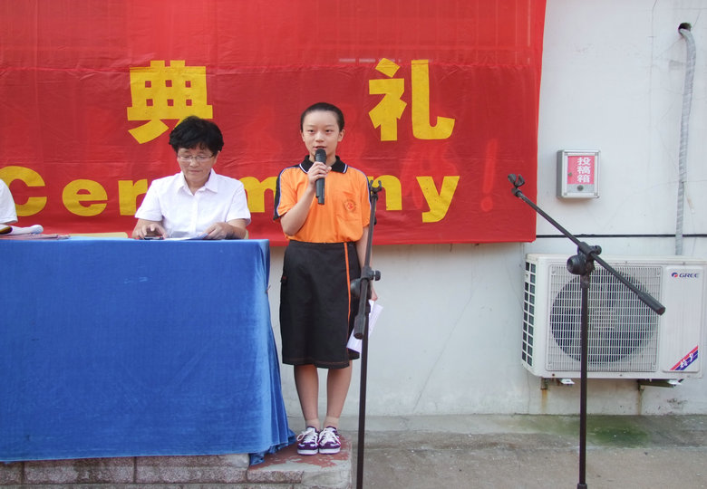 莊嚴(yán)的國歌后,迎來了典禮的開始。首先,安外西區(qū)常務(wù)副校長陳一平做了熱情洋溢的新學(xué)期致辭。陳副校長說了一個感人卻又真實(shí)的故事,一位母親帶著孩子來懇求,希望自己的孩子能進(jìn)安外這所學(xué)校。從這件事可以看出,安外在社會上的形象,市民心中的分量。然后是教師代表詹興銀老師發(fā)言,只有學(xué)生是成功的,老師才是優(yōu)秀的。他的話語把師生緊緊聯(lián)系在了一起。接著,張莉老師讓我們的外籍教師和學(xué)生見了面。接下來,初三(3)班陳明偉同學(xué)、初一(6)班焦穎同學(xué)分別作為學(xué)生代表、新生代表發(fā)言。最后,教學(xué)部主任蘆丹對上學(xué)年校級先進(jìn)班集體、文明班級、三好學(xué)生等進(jìn)行了宣讀,并一起合影留念?!?br /> 新學(xué)期在開學(xué)典禮中拉開了序幕。新學(xué)期,新希望,我們將奮勇向前!