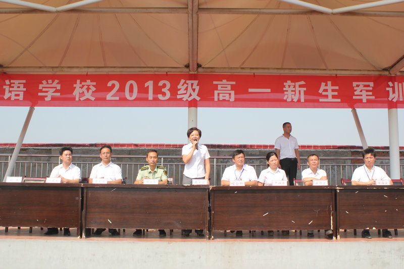 儀式最后,校長黃文莉莊嚴宣布安慶外國語學校2013級高一新生軍訓正式開營。本期軍訓隨即開始。