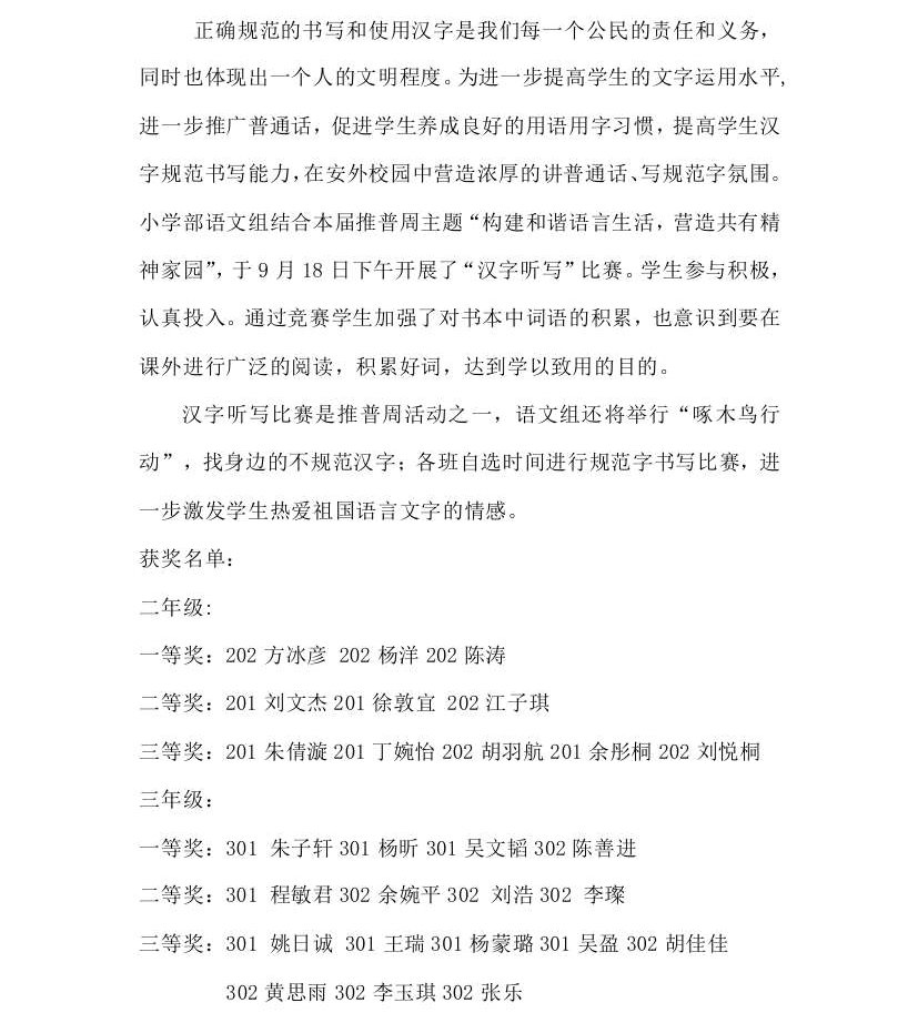 小學(xué)部舉行首屆漢字聽(tīng)寫(xiě)比賽