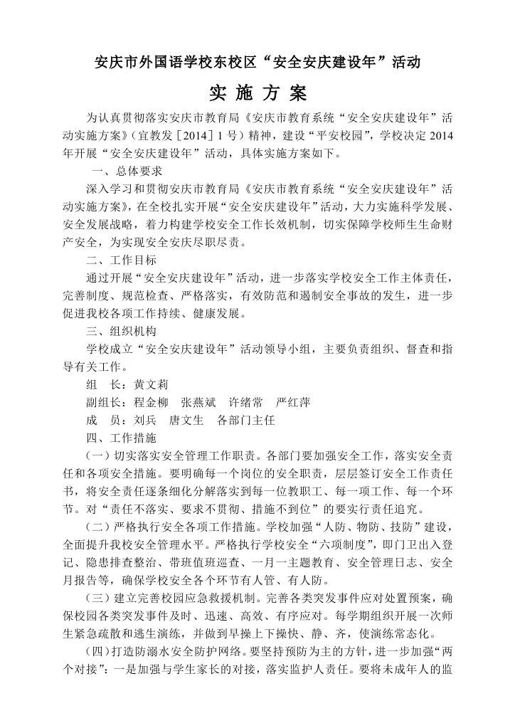 安慶市外國語學(xué)校東校區(qū)“安全安慶建設(shè)年”活動實施方案