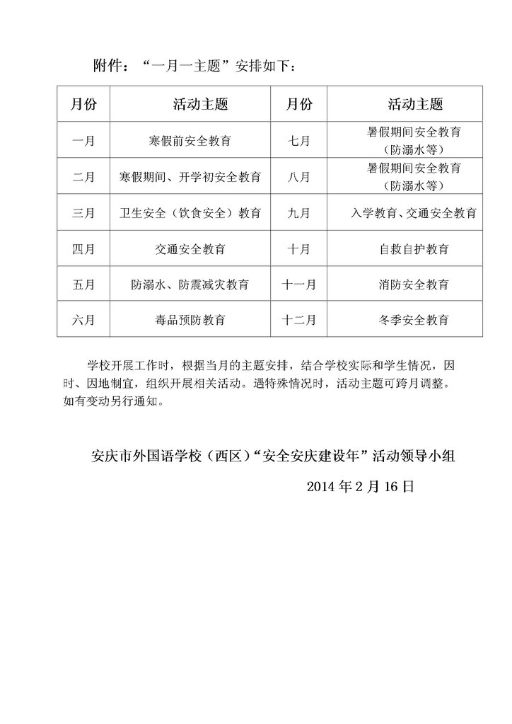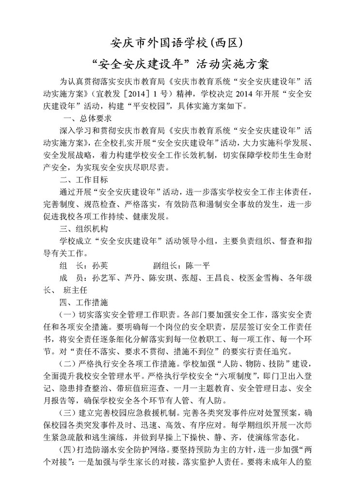 安慶市外國語學(xué)校(西區(qū))“安全安慶建設(shè)年”活動實(shí)施方案