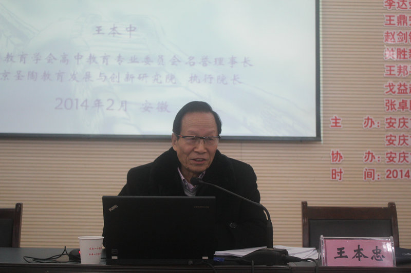 上午8:30,舉行開幕式,會議由合肥鴻雁教育有限公司李勇康主持。安慶市教育局教工委書記、副局長陳云作了重要講話。我校黃文莉校長向全體參會人員致歡迎詞并簡要介紹了我校的基本情況。最后,國家教育咨詢委員會委員,國家考試指導(dǎo)委員會委員,國家基礎(chǔ)教育課程教材專家工作委員會委員王本中教授主講《普通高中教育發(fā)展的新思路與高考改革的走向》。