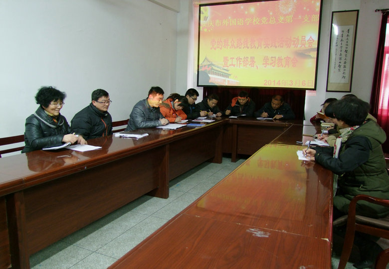 3月7日,安慶市外國(guó)語(yǔ)學(xué)校(西區(qū))在二樓會(huì)議室召開(kāi)了學(xué)校黨總支第一支部黨的群眾路線(xiàn)教育實(shí)踐活動(dòng)動(dòng)員會(huì),參加會(huì)議的有校長(zhǎng)孫英、校黨總支書(shū)記陳一平、校黨總支委員、人事部主任孫藝軍、黨總支第一支部書(shū)記、教學(xué)部主任蘆丹和西區(qū)全體黨員,會(huì)議對(duì)學(xué)校黨支部黨的路線(xiàn)教育實(shí)踐活動(dòng)進(jìn)行工作部署并開(kāi)展專(zhuān)題學(xué)習(xí)。