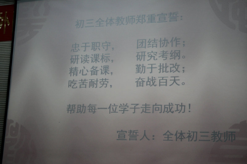 本次大會氣氛熱烈,振奮人心。大家都感到儀式簡潔而有力量,不僅動員了中考,本身對學(xué)生也是一次很好的儀式教育。
