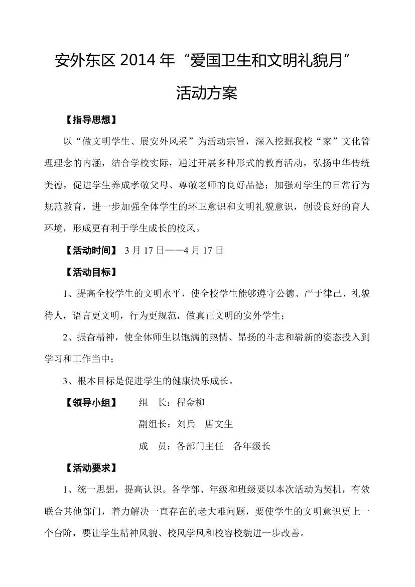 安外東區(qū)2014年“愛國衛(wèi)生和文明禮貌月”活動方案