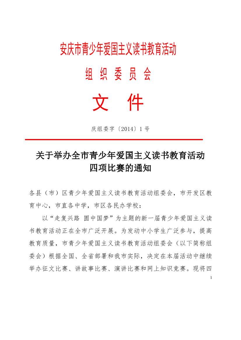 關(guān)于舉辦全市青少年愛國主義讀書教育活動四項比賽的通知