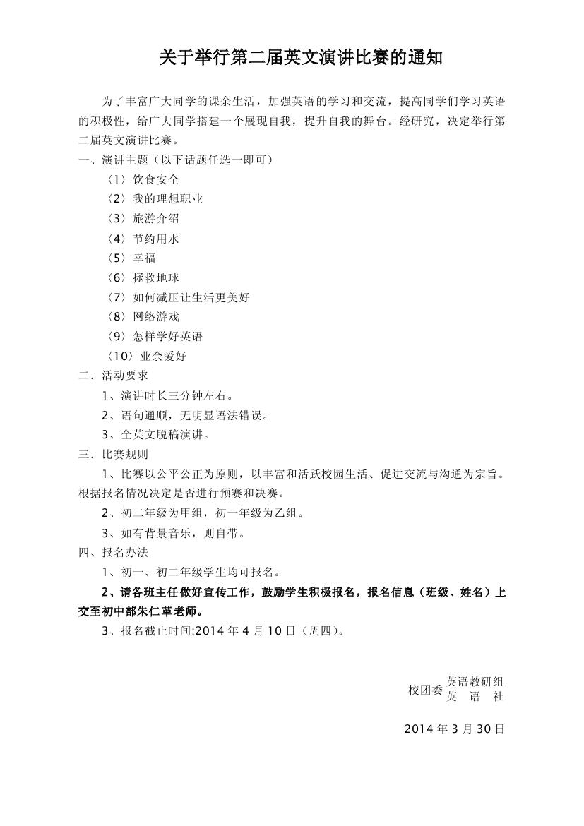 關于舉行安慶市外國語學校第二屆英文演講比賽的通知