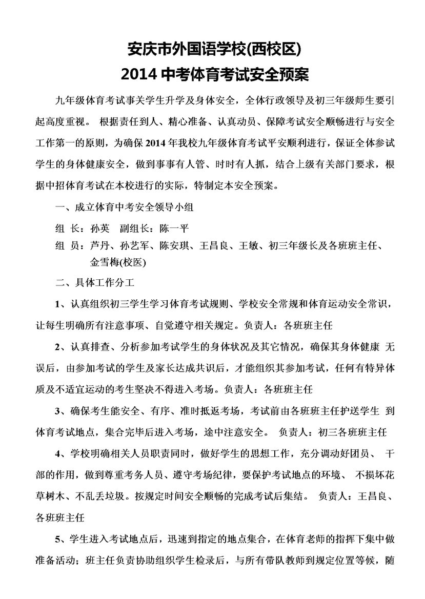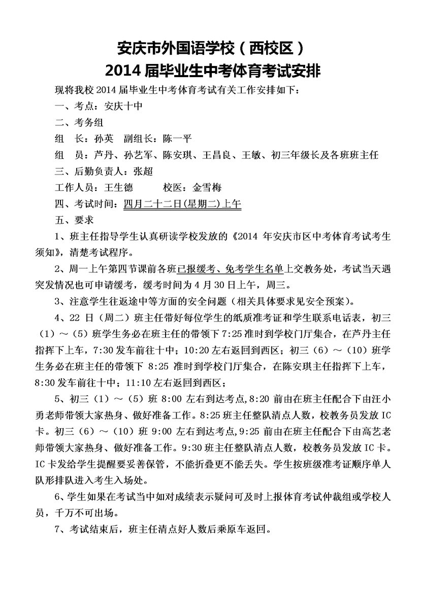 14屆體育考試安排表
