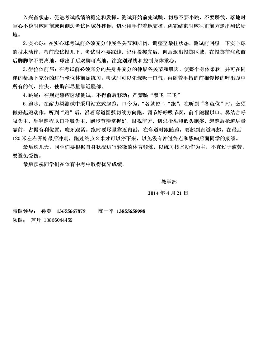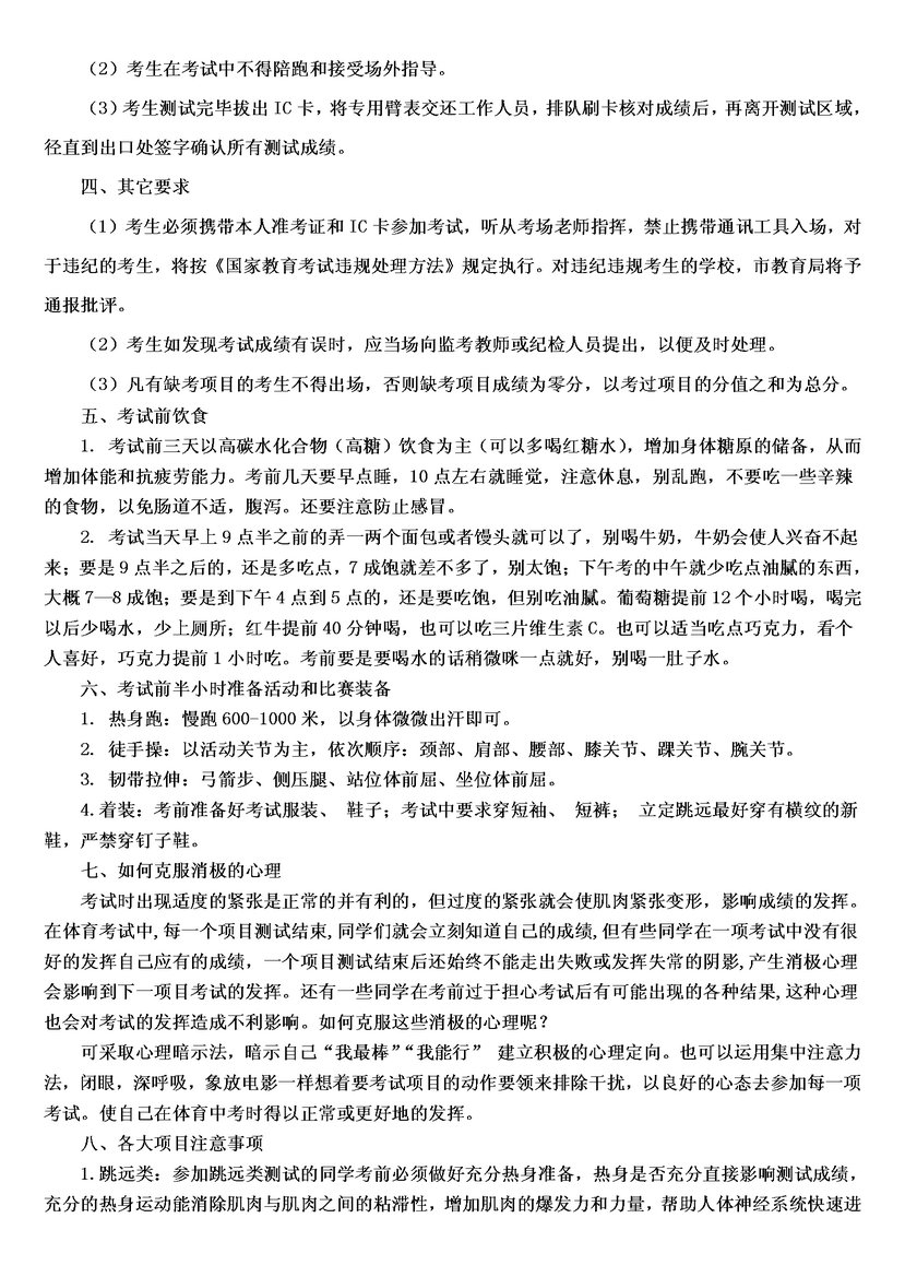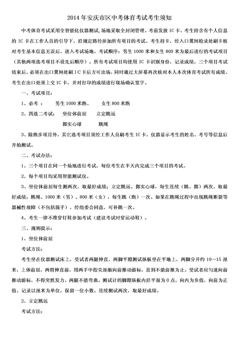 2014年安慶市區(qū)中考體育考試考生須知