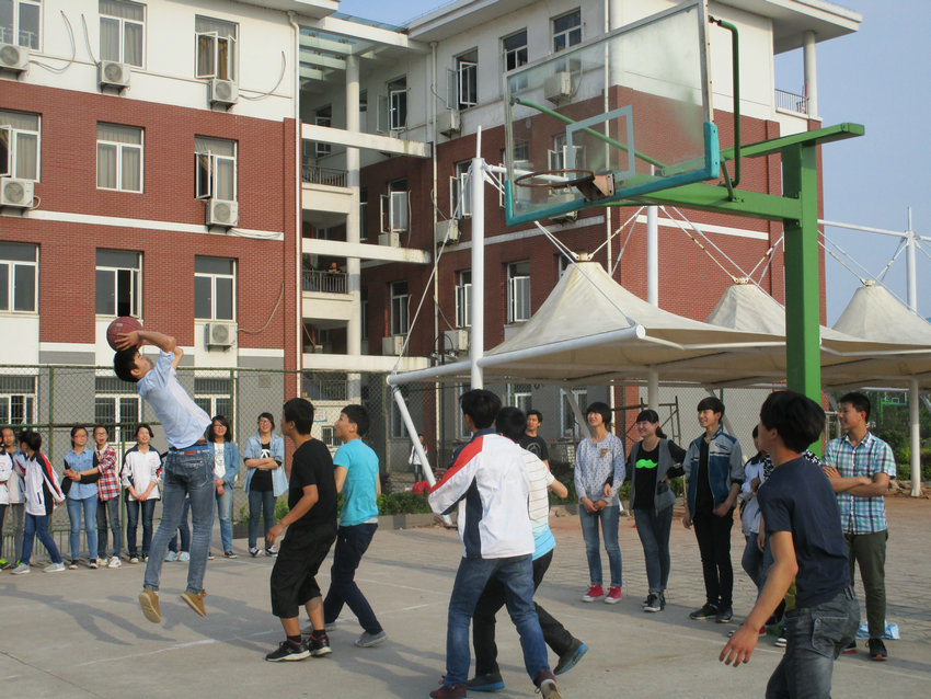 為培養(yǎng)學生的集體榮譽感,豐富學生的課余文化生活,增進班級之間的友誼,提高學生的籃球競技水平。初二年級從4月26日開始,進行了一場別開生面的迎“五一”籃球賽-----男生三對三對抗賽。
