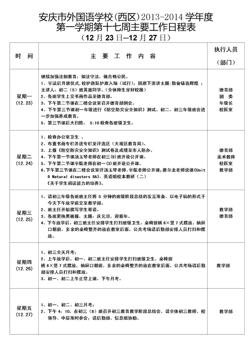 第十七周主要工作日程表